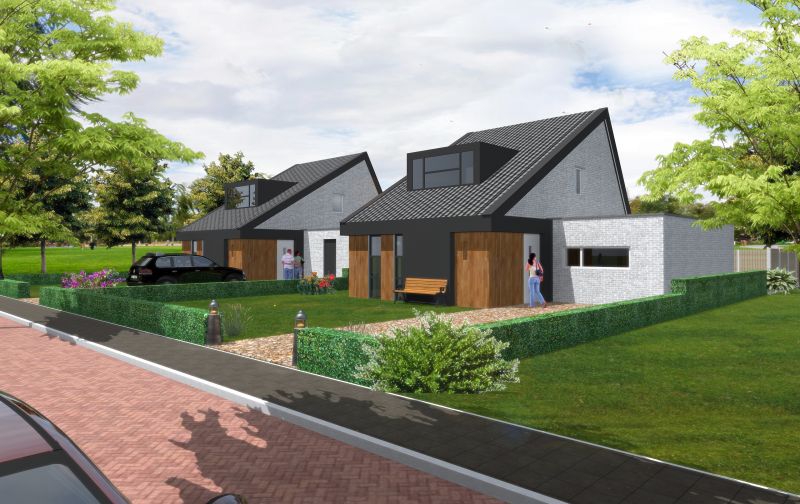 Voor onze opdrachtgever hebben we projectmatige maatwerk 2^1 kap woningen mogen ontwerpen en visualiseren.